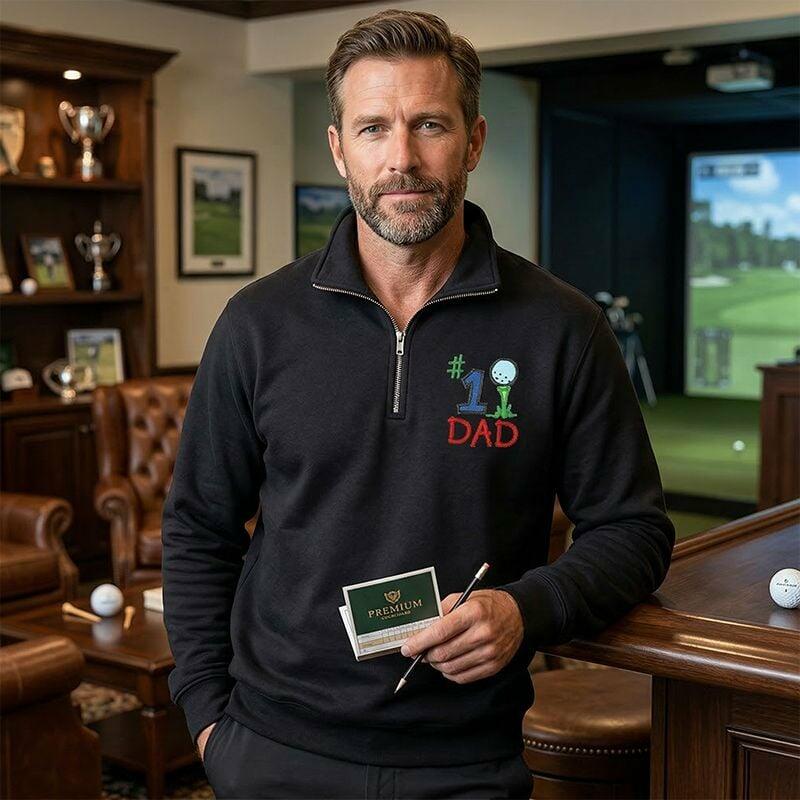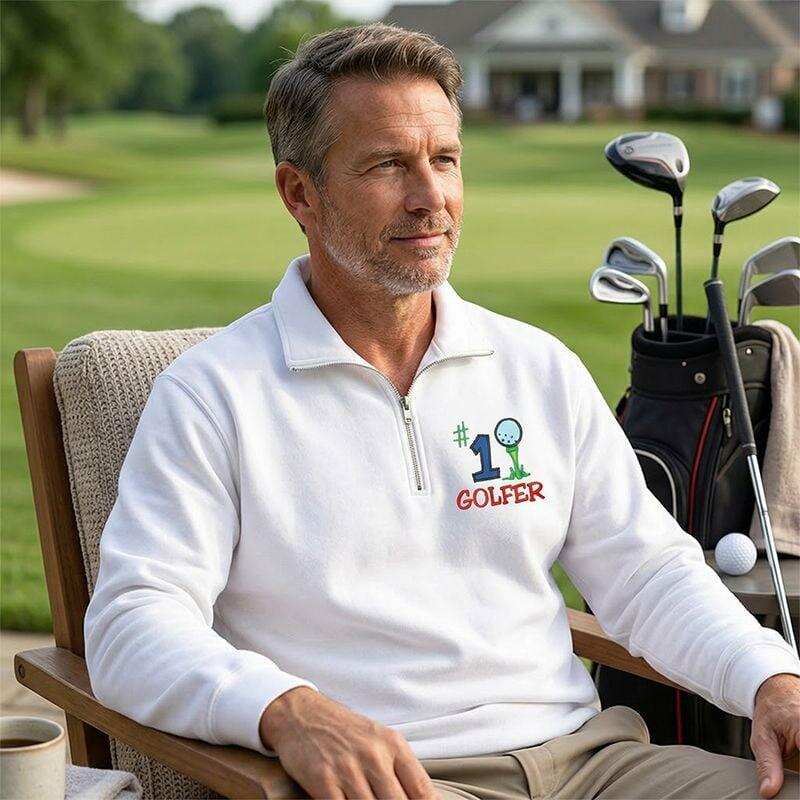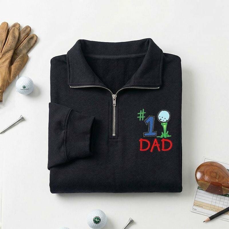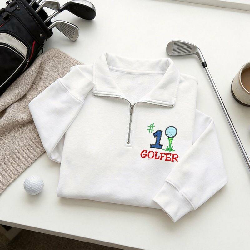 Felpa personalizzata con zip a un quarto ricamata con disegno personalizzato Regalo per gli amanti del golf in famiglia