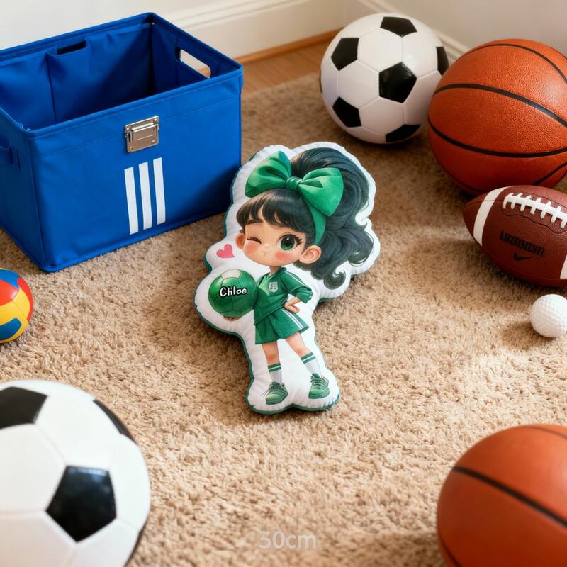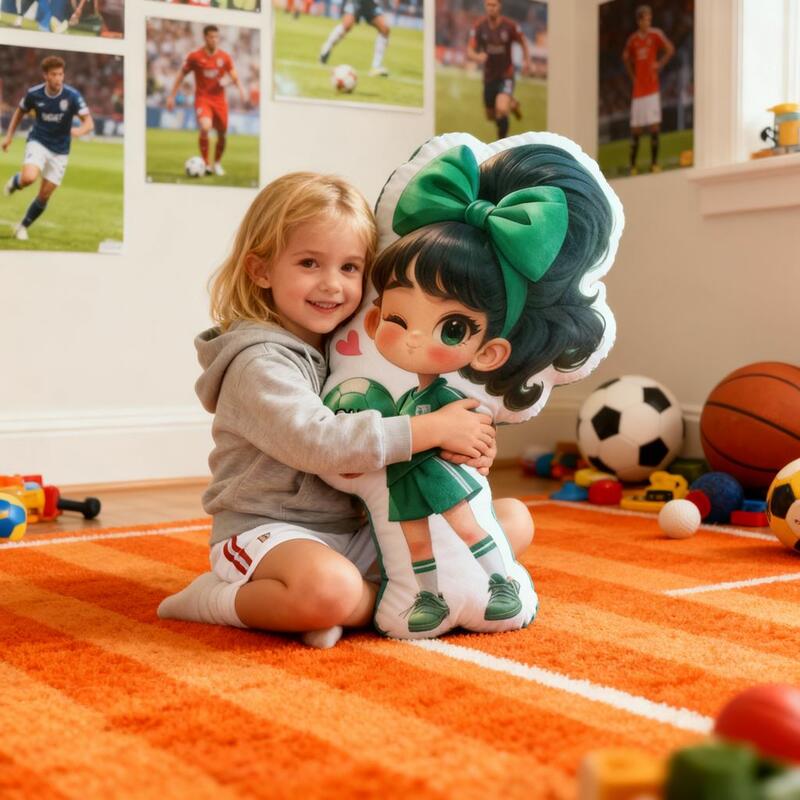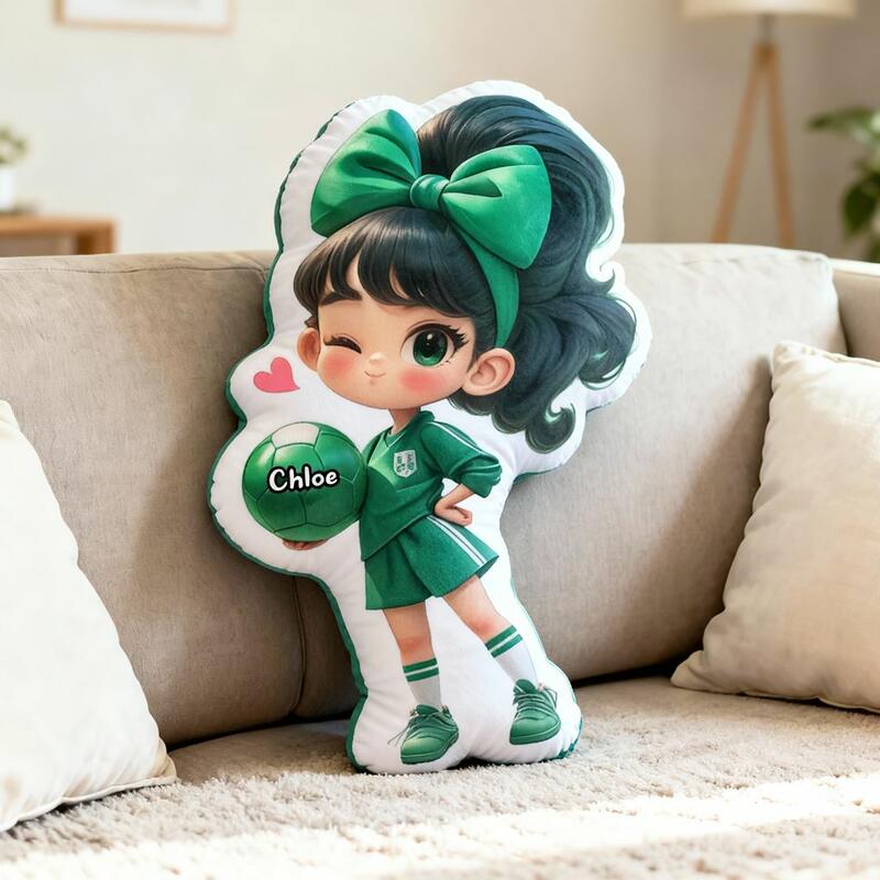 Cuscino personalizzato con ragazza calciatrice cuscino morbido con stampa cartone animato regalo di compleanno per bambini