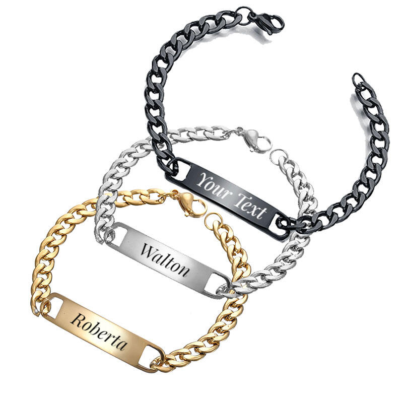 Bracciale da uomo a catena in acciaio inossidabile personalizzato con testo personalizzato per la festa del papà