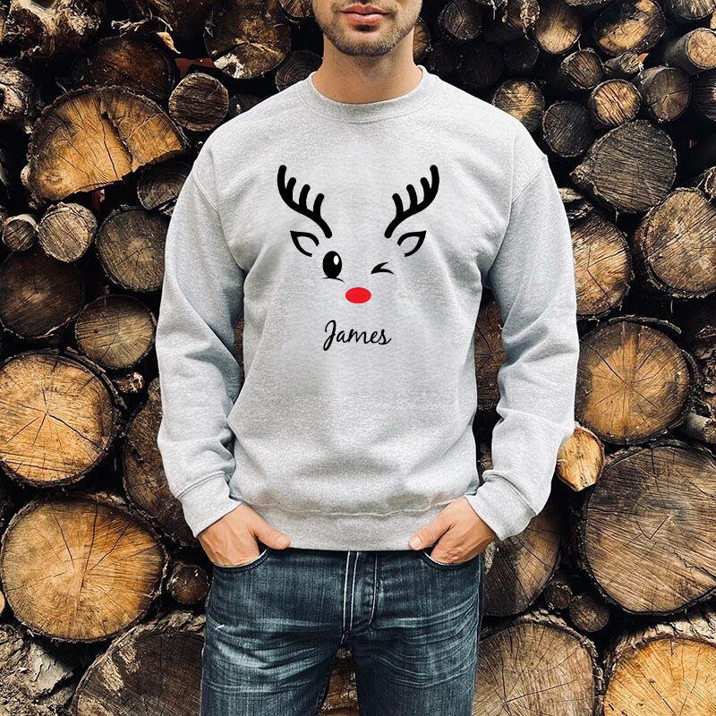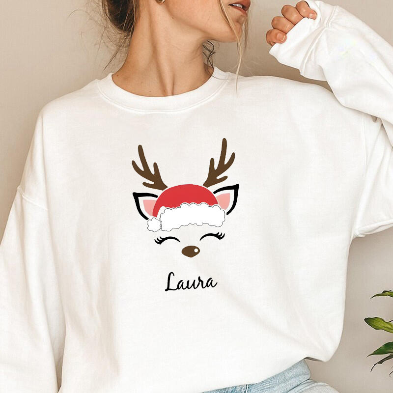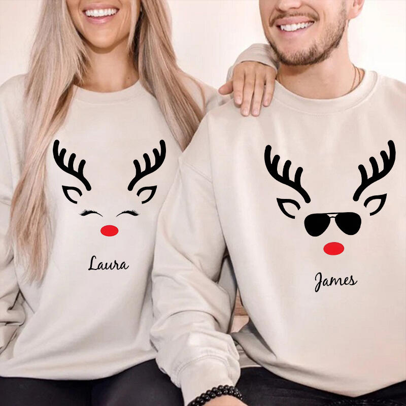Felpa personalizzata con disegno di renna Serie Head Design regalo di Natale carino per coppie