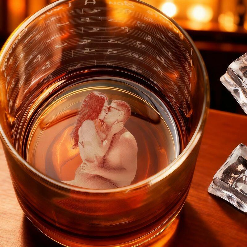 Bicchiere da whisky personalizzato Ti ho scritto una canzone d'amore Regalo malizioso con foto personalizzata per il marito l'amante