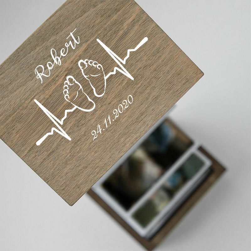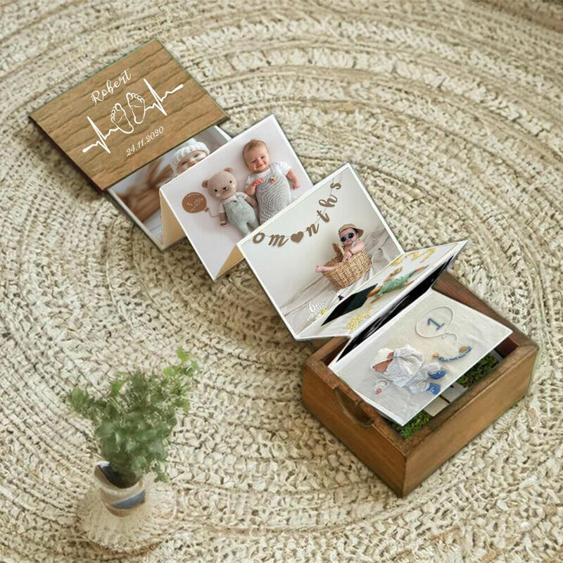Scatola fotografica in legno personalizzata Aggiungi data di nascita del bambino Album fotografico per neonati Regalo per neomamma